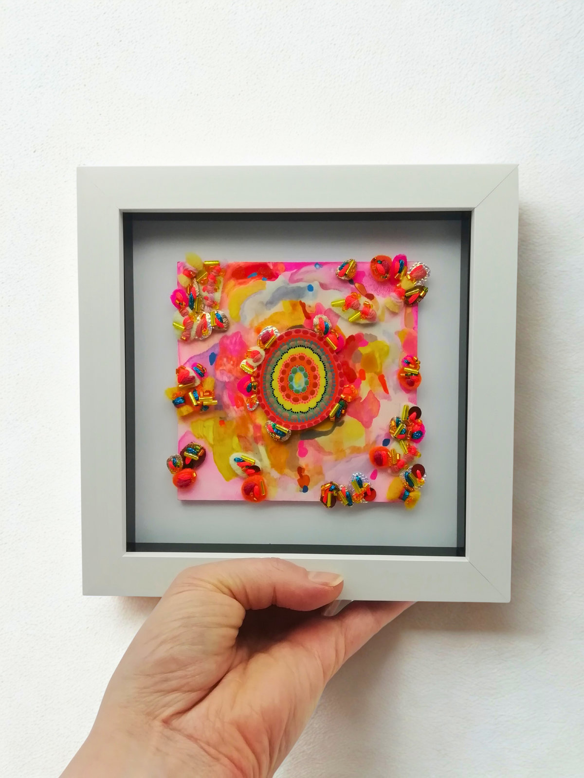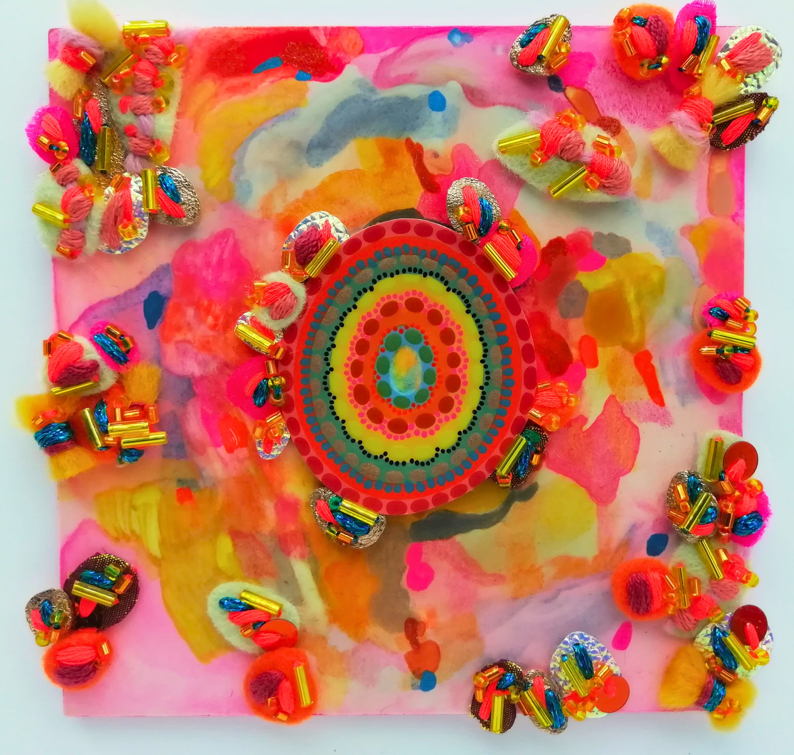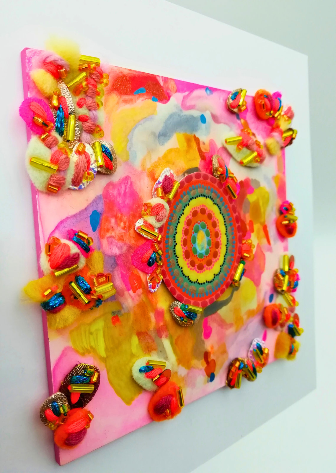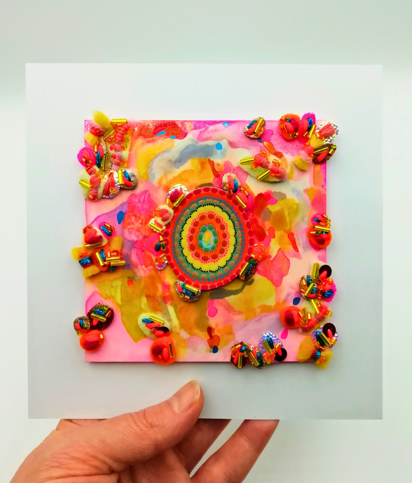 This one, and a few of the subsequent Razzle Dazzle artworks, will be slightly simpler as there's going to be more of the painted abstract background that's visible, rather than so much textile art that you can see in versions 1-7. Who else adores the colour pink? I honestly can't get enough of it, and after a few artworks where I limited the palette to not include much pink, it's been a pleasure to make this one 🩷
